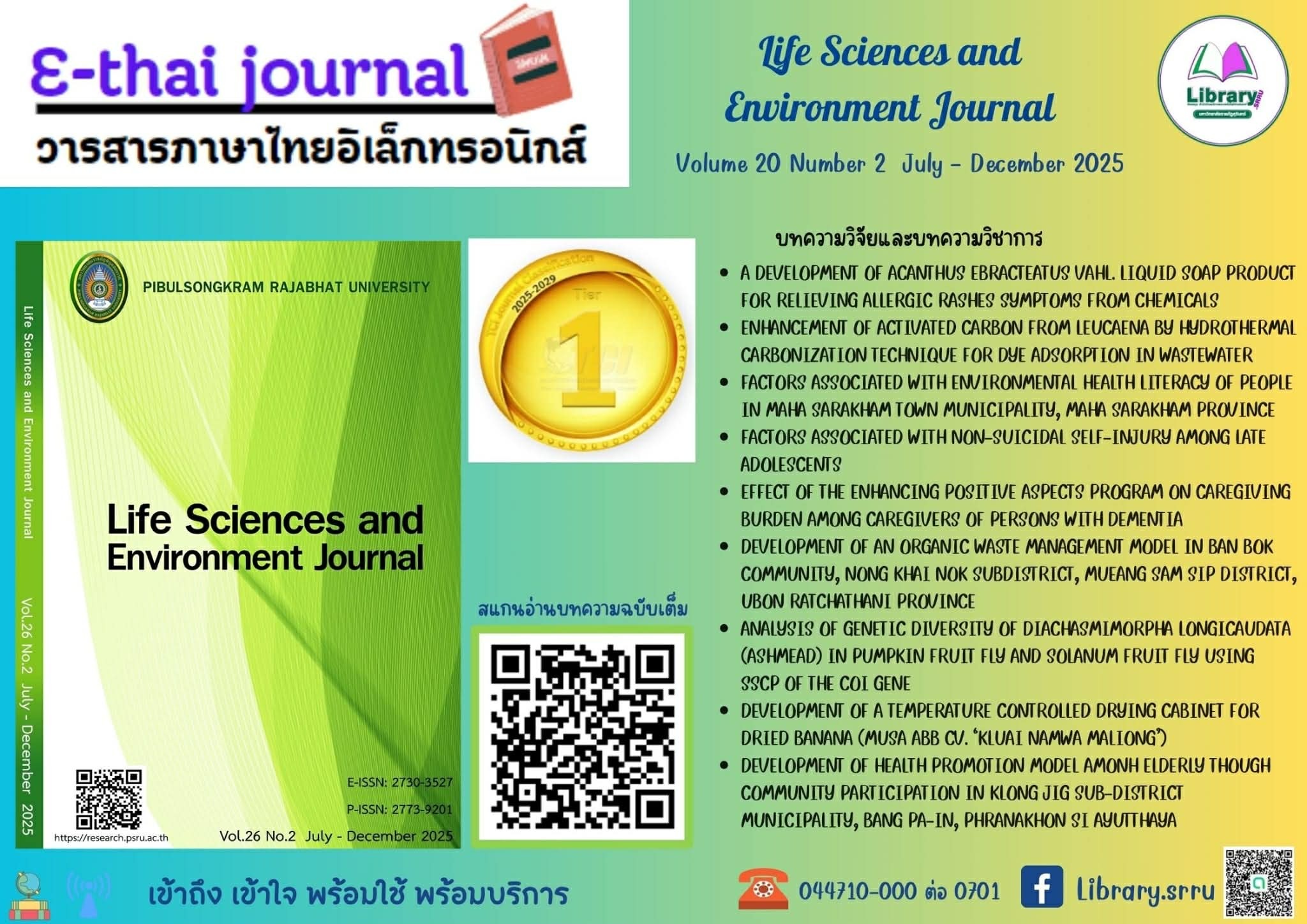 ชื่อวารสาร “Life Sciences and Environment Journal” Volume 20 Number 2 July – December 2025 เป็นวารสารที่เผยแพร่งานวิจัย และบทความทางวิชาการ โดยครอบคลุมสาขาวิชาดังนี้ 1. สาขาวิทยาศาสตร์การเกษตรและวิทยาศาสตร์ชีวภาพ 2. วิทยาศาสตร์สิ่งแวดล้อม 3. วิทยาศาสตร์สุขภาพ 4. สหวิทยาการทางด้านวิทยาศาสตร์ สามารถอ่านได้แบบออนไลน์ โดยการสแกนคิวอาร์โค้ด และสามารถเลือกเรื่องที่จะอ่านหน้าสารบัญได้เลย